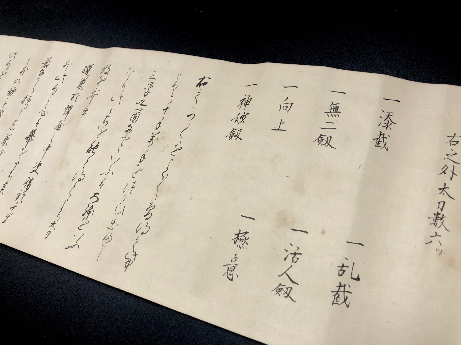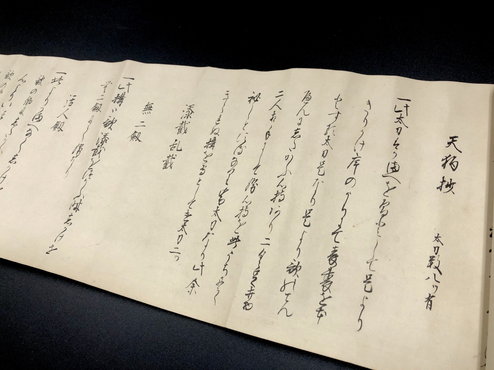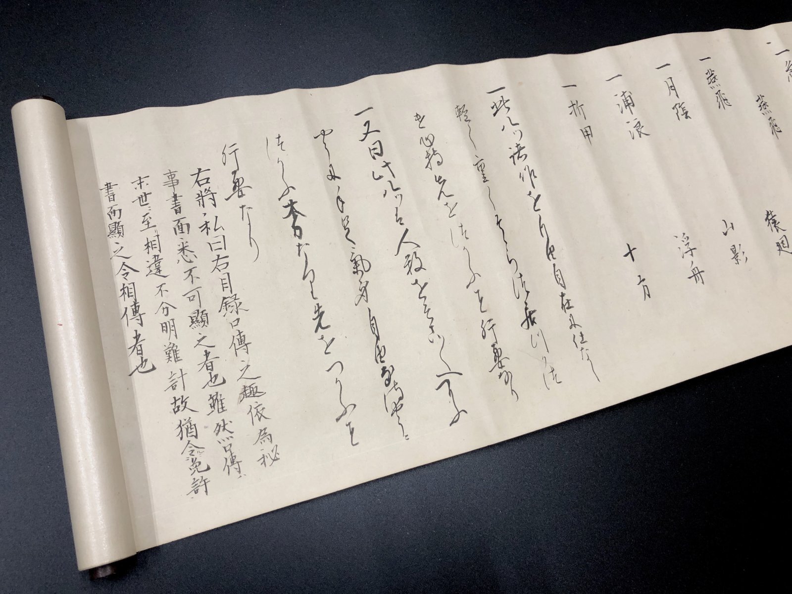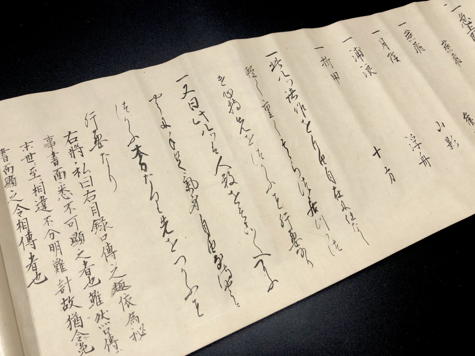 文政八年伝授 狭川新之烝将長(花押・落款)ヨリ男沢三郎宛 20×650cm 原装緞子表紙 経年シミ