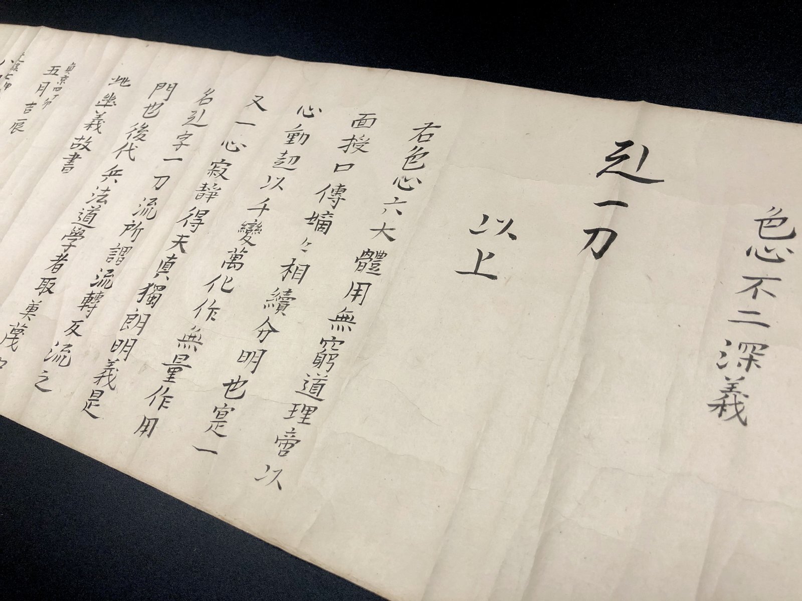 安永五年伝授 福島十兵衛房則ヨリ池内久右衛門宛 約18×300糎 原装緞子表紙 折れ有り